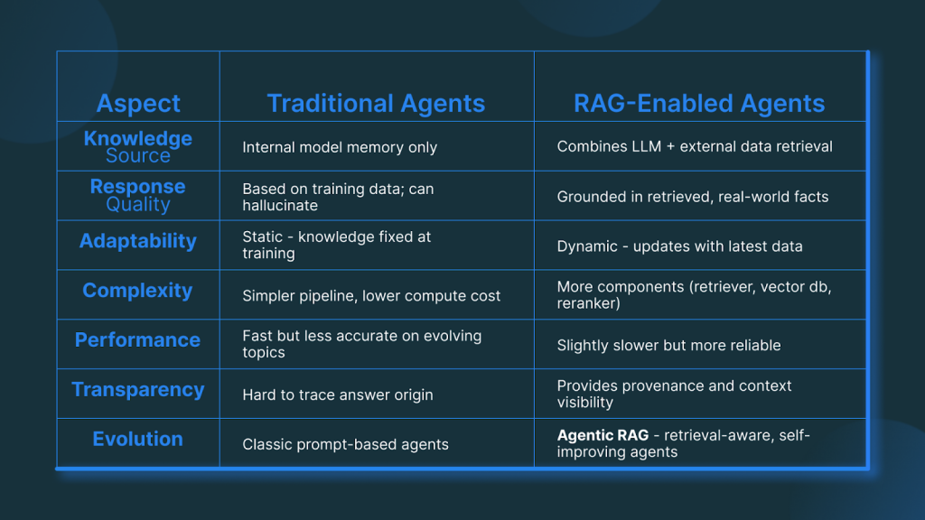 RAG-Enabled Agents vs Traditional Agents - Key Differences